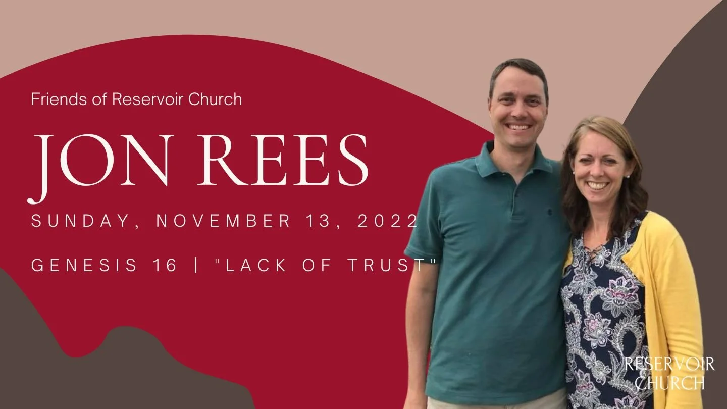 This week we are excited to welcome Jon and Robin Rees to Reservoir. Jon will be preaching from Genesis 16 helping us increase our trust in Jesus. Join us for worship at 10 am 2437 S Centre City PKWY in Escondido.