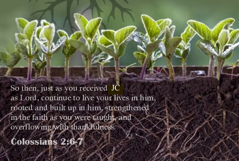 So then, just as you received Christ Jesus as Lord, continue to live your lives in him, rooted and built up in him, strengthened in the faith as you were taught, and overflowing with thankfulness. Colossians 2:6-7